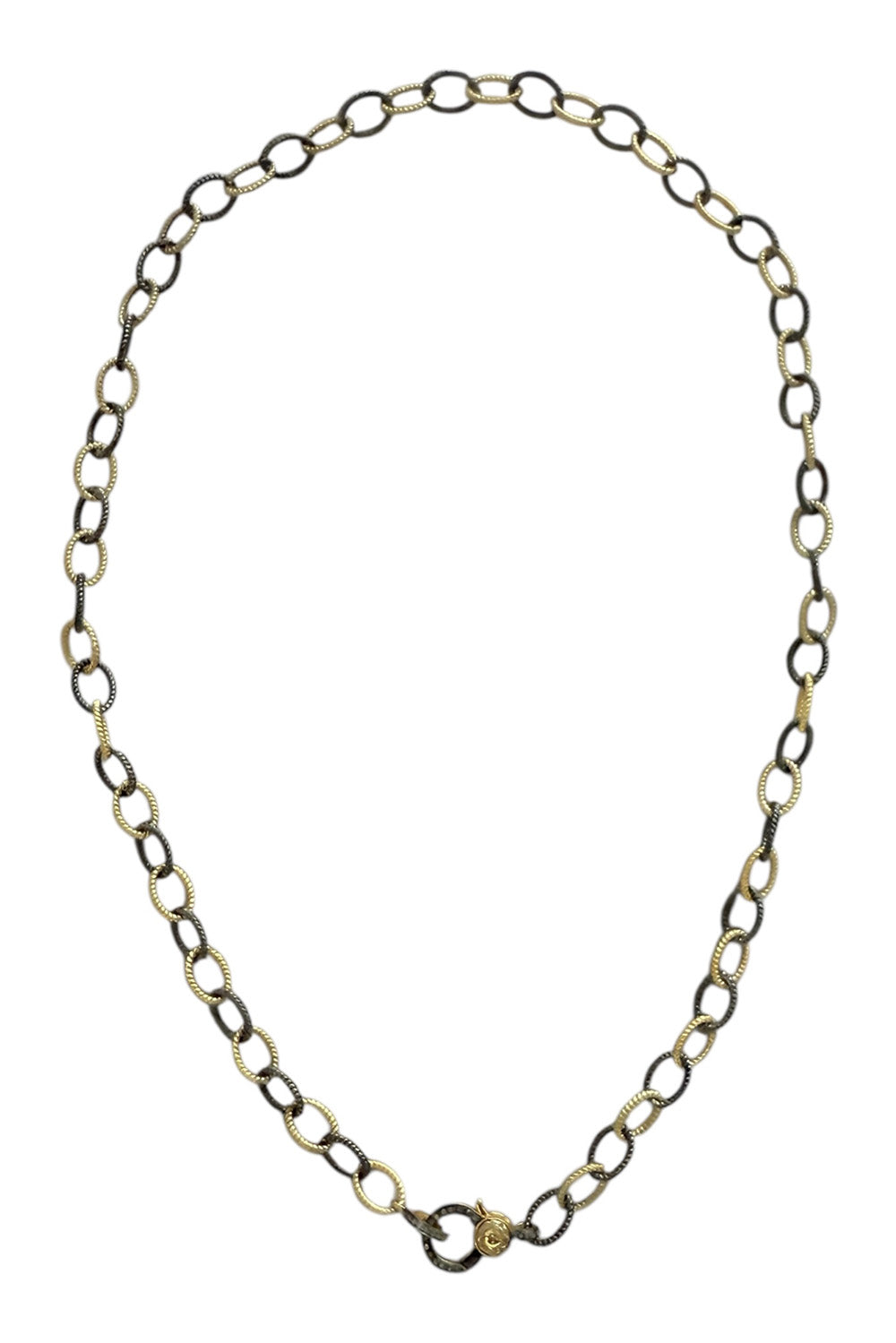 Gemstone Necklace with Gold Plated Rings in Azurite Malachite