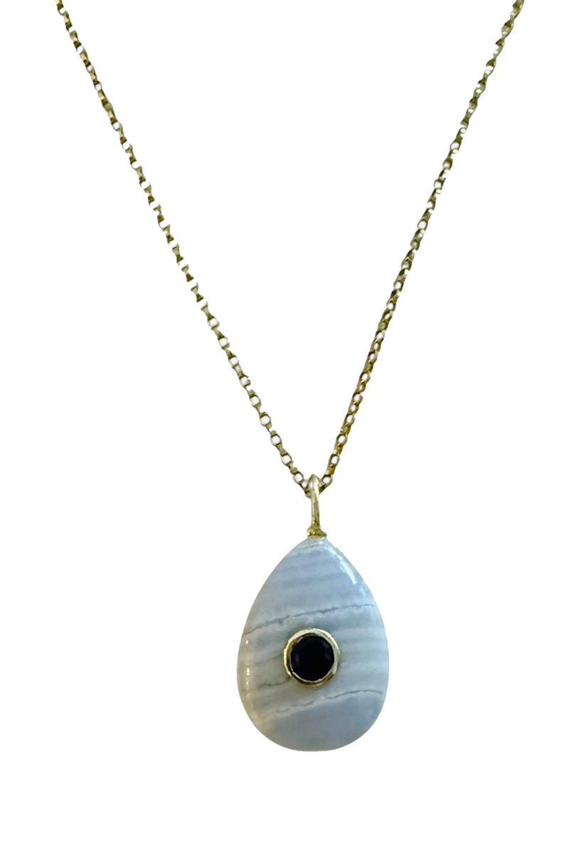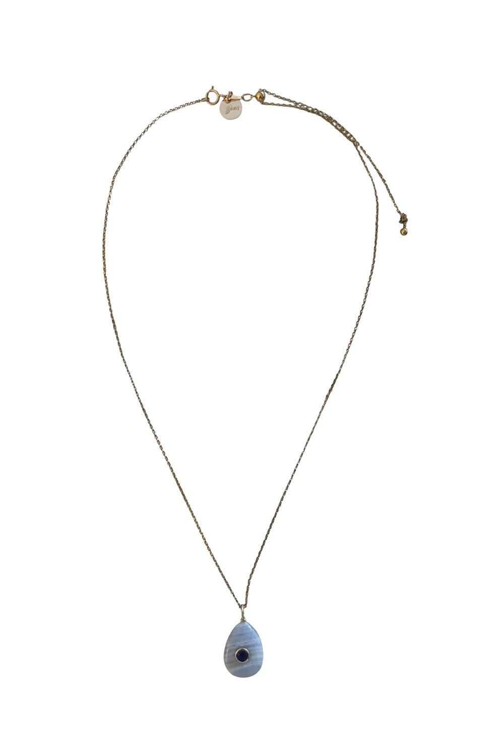 Necklace of Gold Filled Adjustable Chain with Blue Lace Agate and Bezel Set Tourmaline