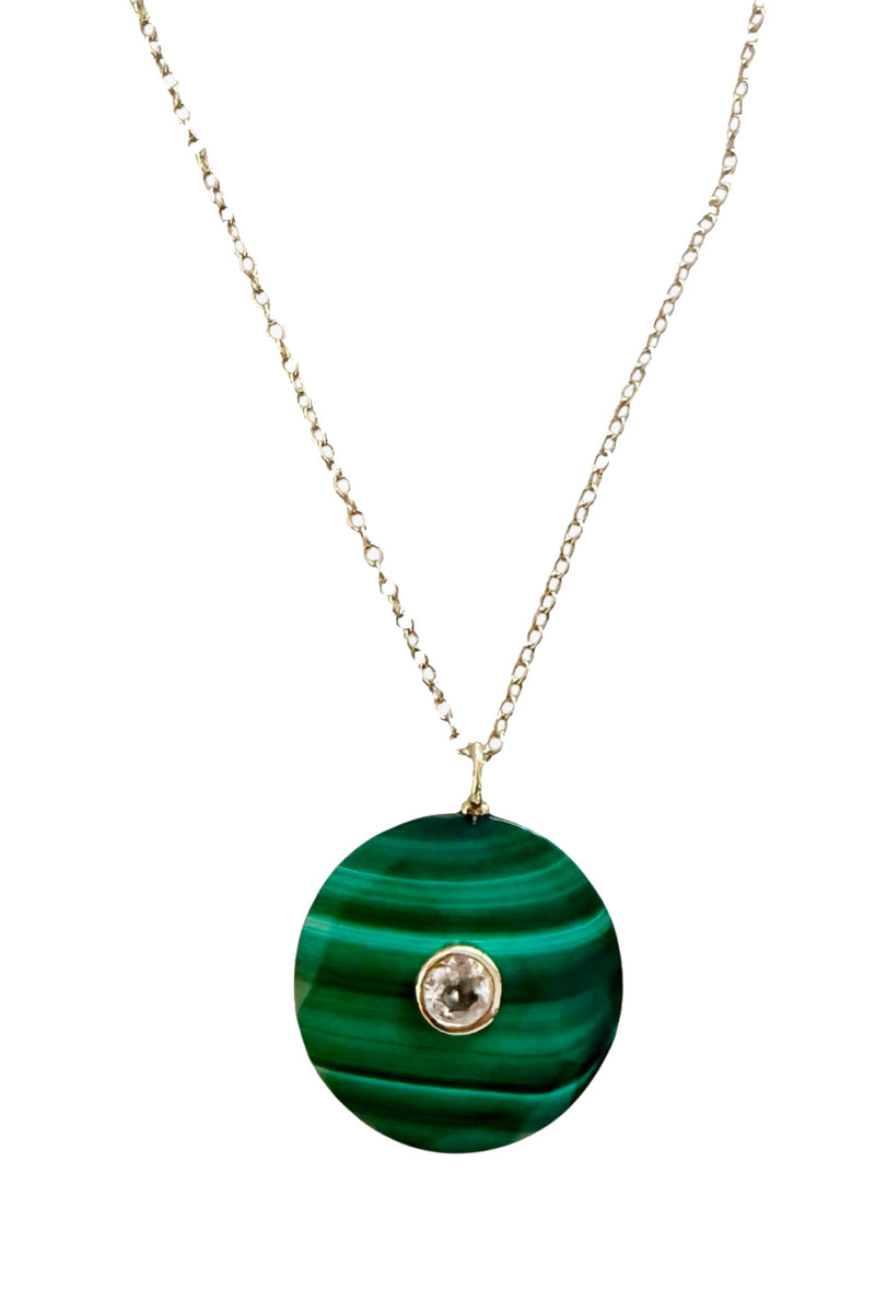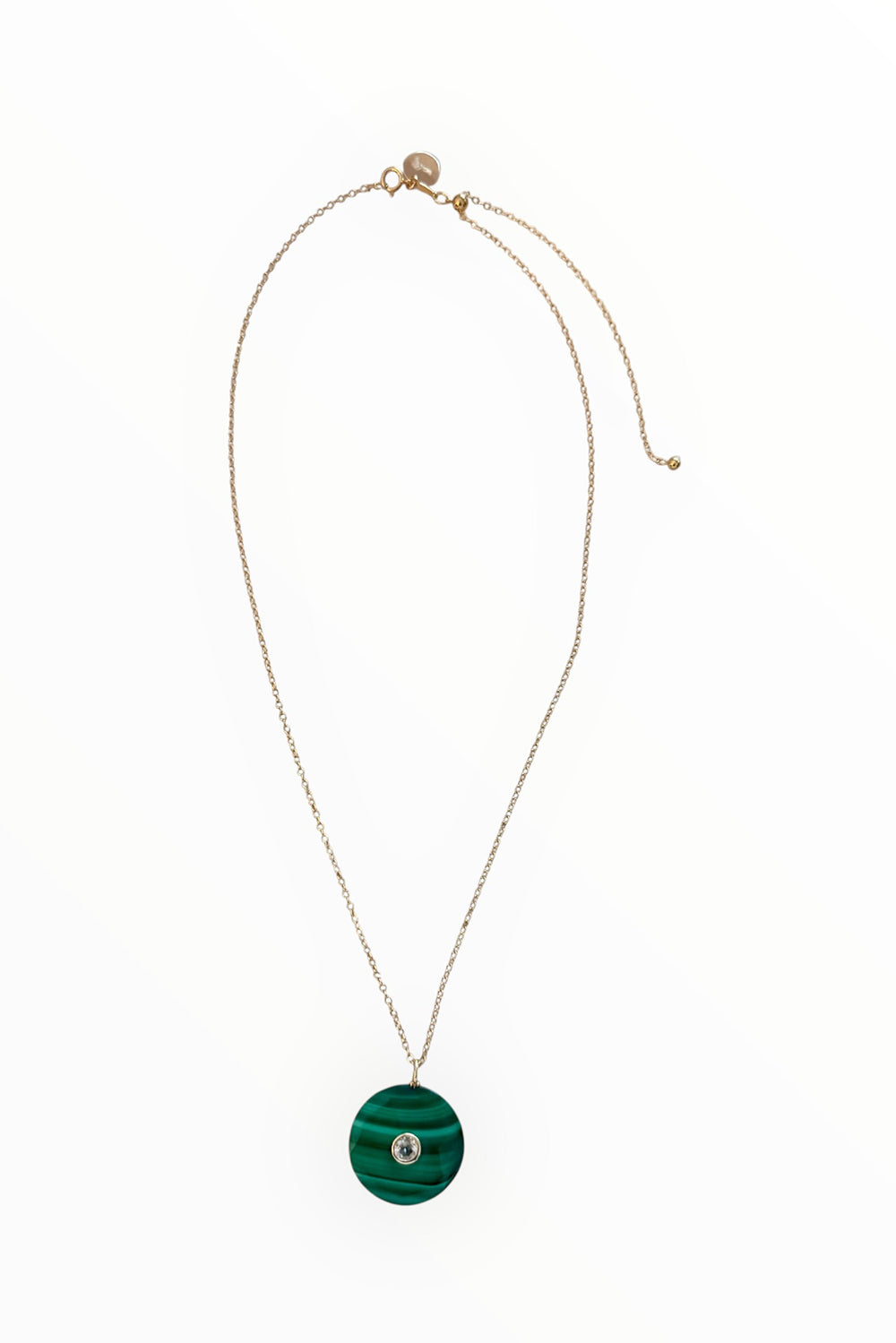 Necklace of Large Malachite with Blue Topaz on Gold Filled Adjustable Chain