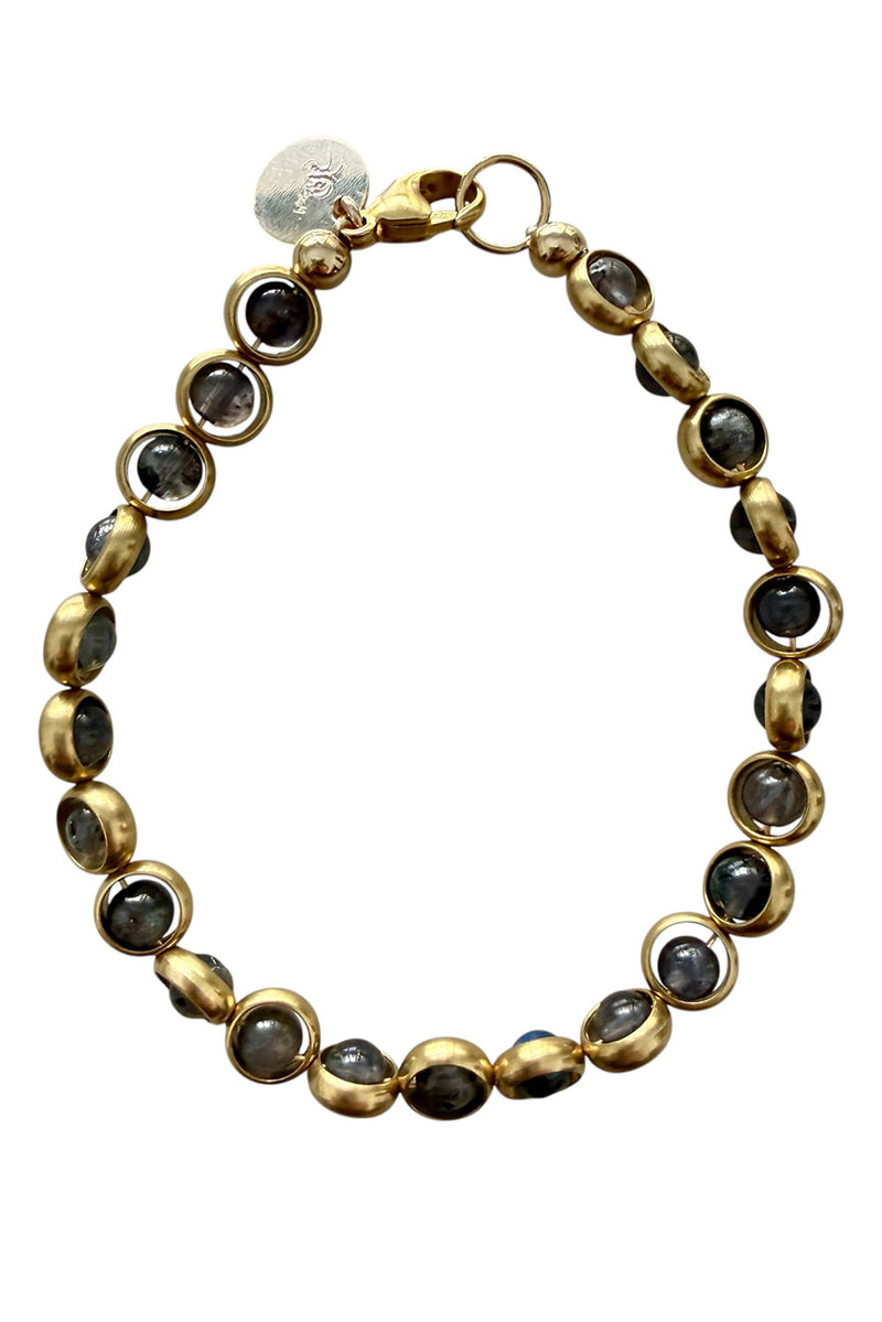 Gemstone Inside Gold Tone Rings Bracelet in Dark Labradorite