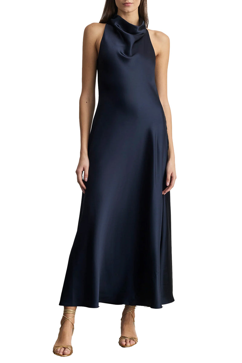 Rem Ruched Midi Dress in Night Blue