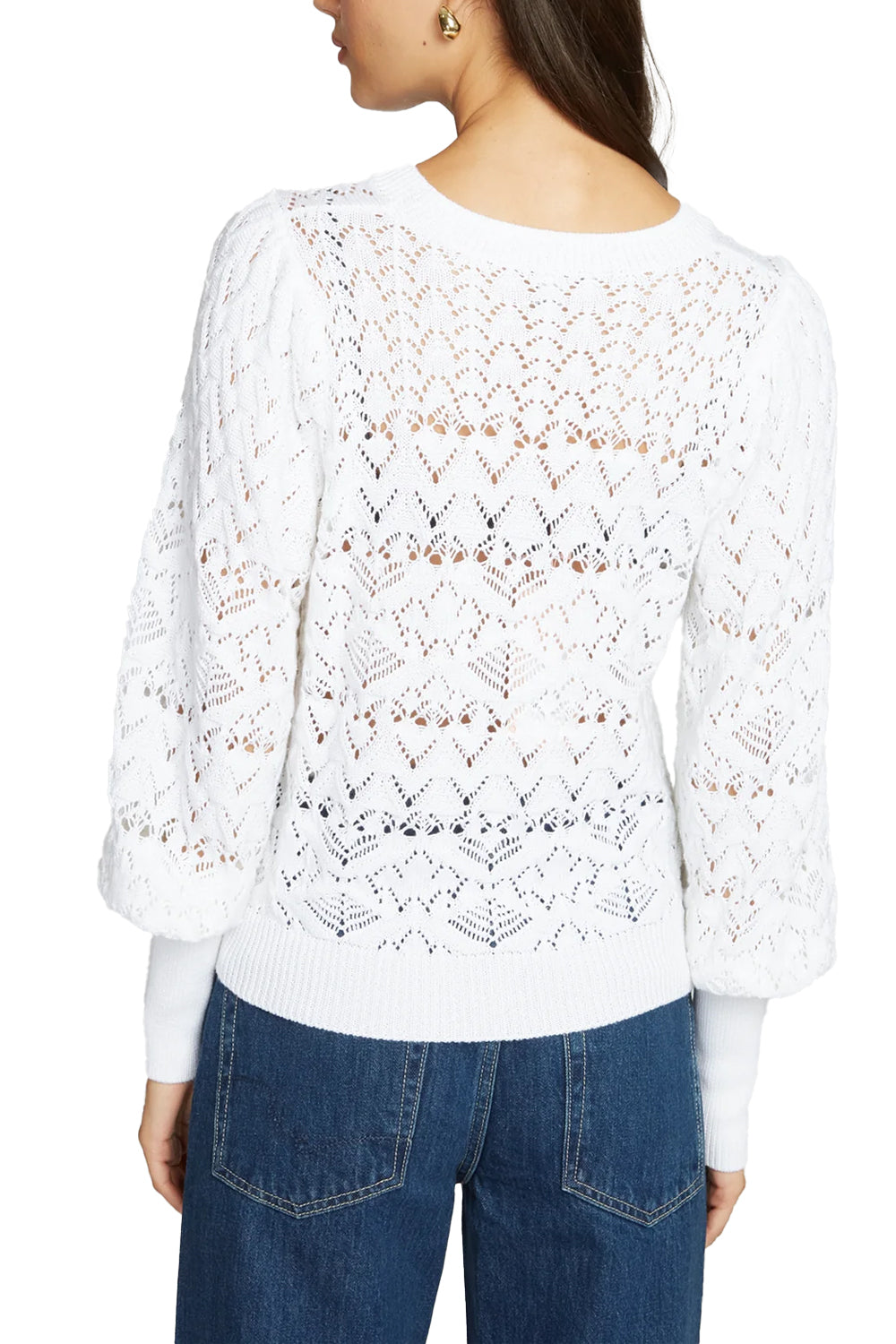 Pointelle Juliette Sleeve Crew in Bleach White