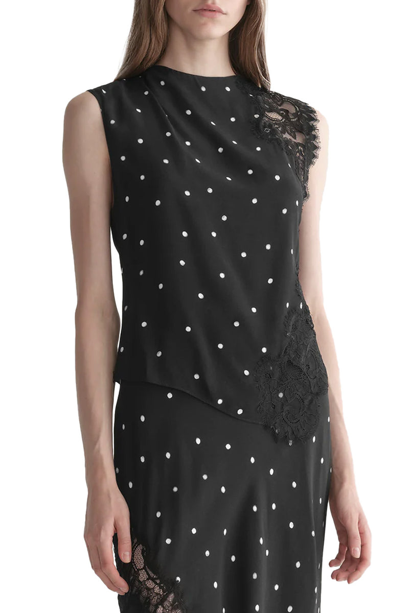 Gracie Polka Dot Crepe and Lace Top in Black Cream