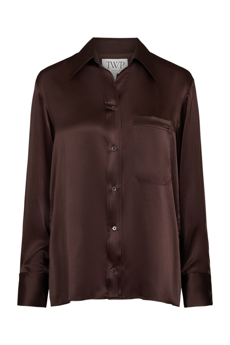 Taite Pant in Shiny Viscose Wool Satin in Chocolate Torte