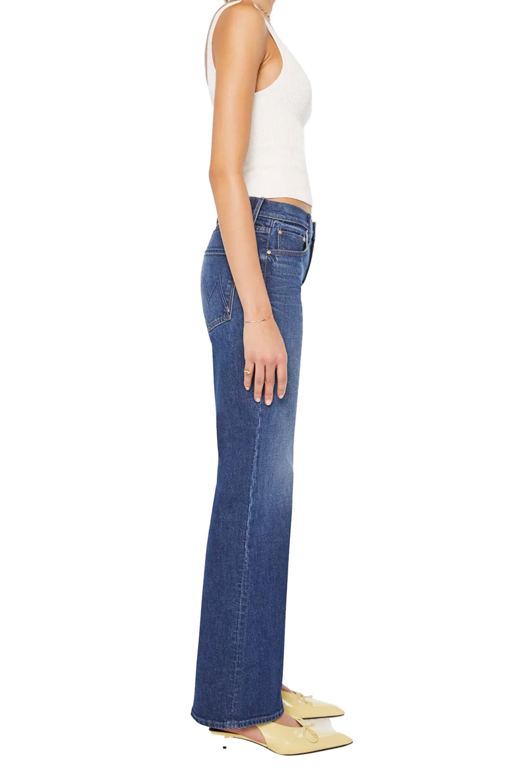 Meet the Bookie Sneak by MOTHER – a high-rise bootcut with a laid-back leg and clean hem, perfect for pairing with cozy knits and boots. Crafted from semi-rigid SUPERIOR denim, this dark blue wash features subtle whiskering and knee-fading for that effortlessly worn-in vibe.