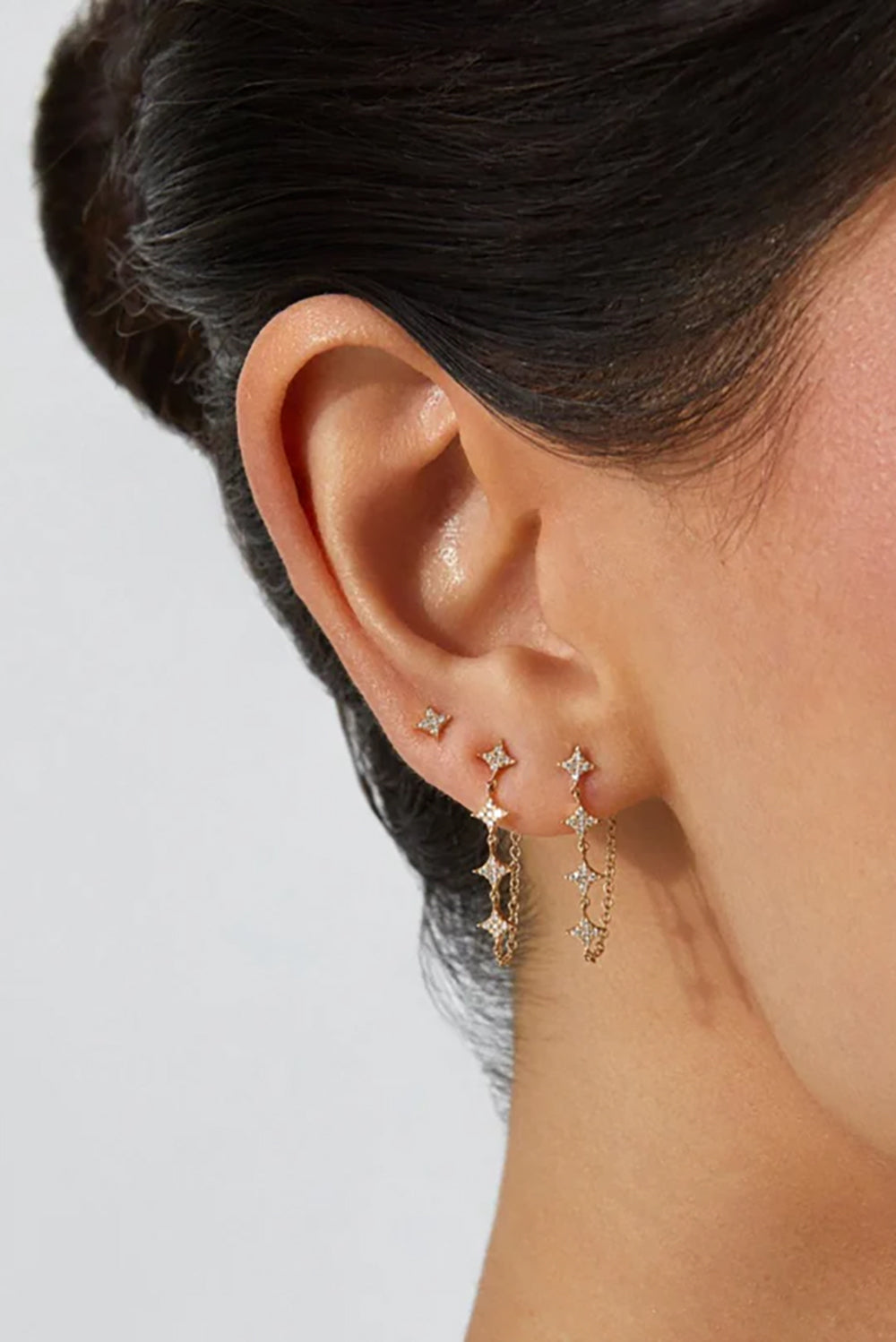 14K Gold Vermeil & Pave Diamond Double Chain Connected Huggies
