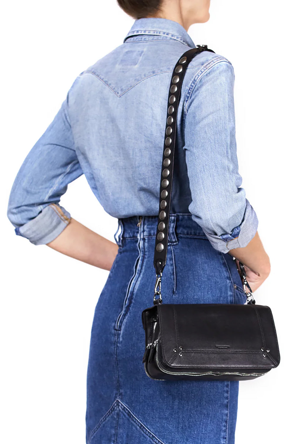 Bandoulière Festival Strap in Noir Silver Cowskin