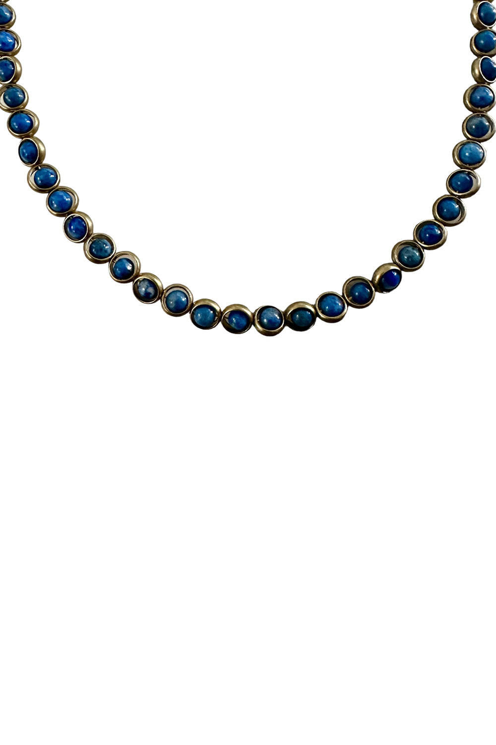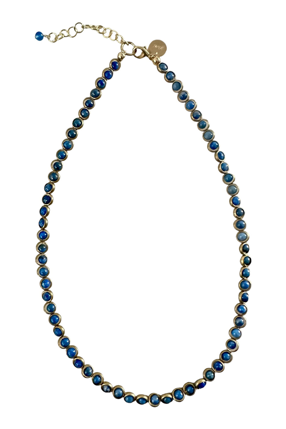 Gemstone Necklace with Gold Plated Rings in Denim Lapis