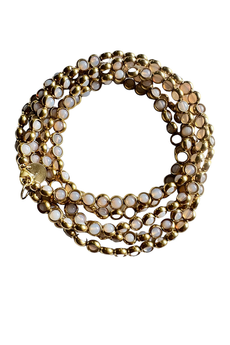 Gemstone Necklace with Antique Gold Rings in Pink Opal