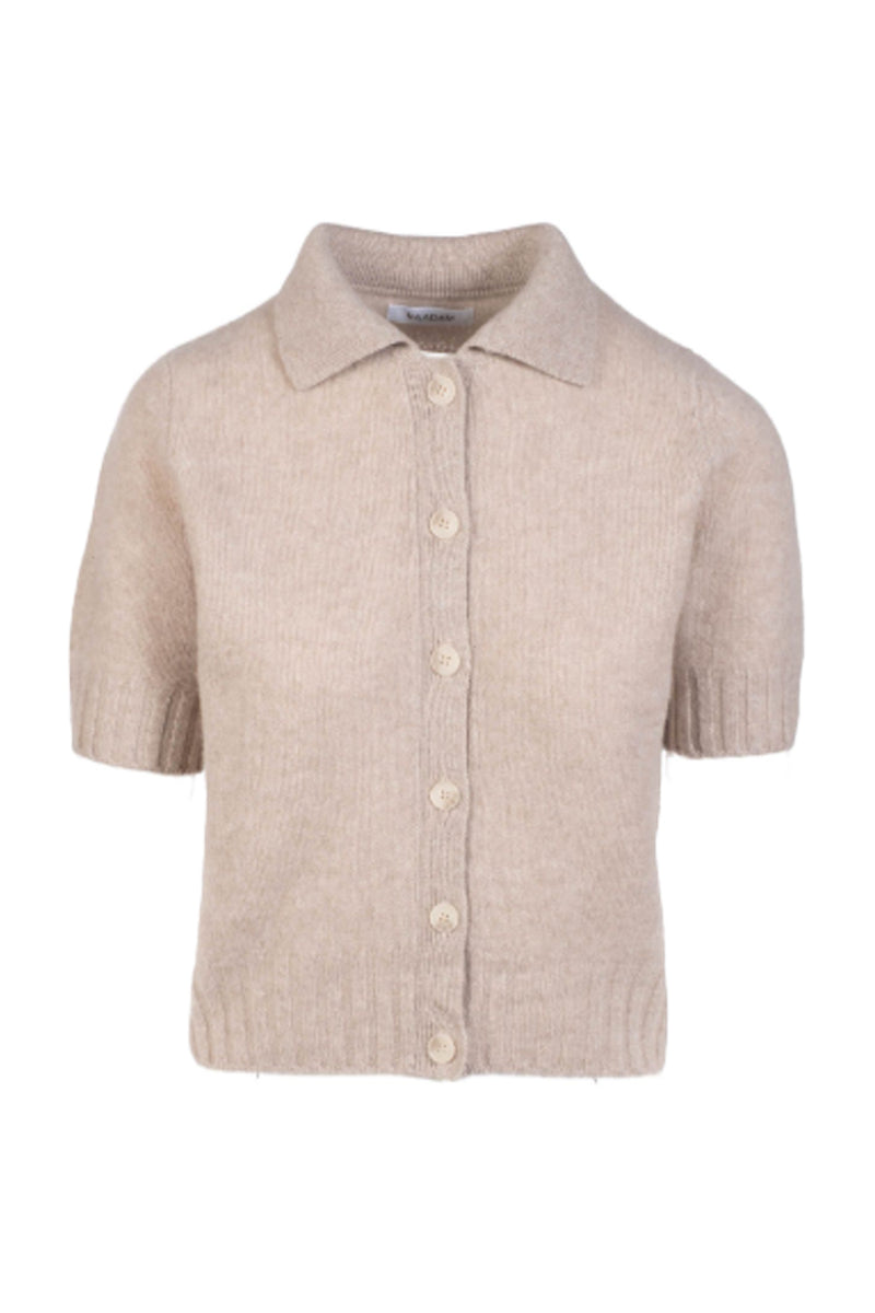 Premium Cashmere Short Sleeve Collared Cardigan in Oat