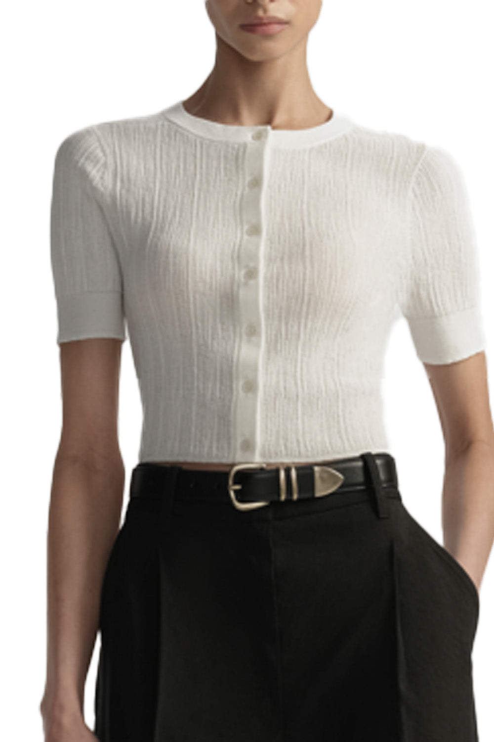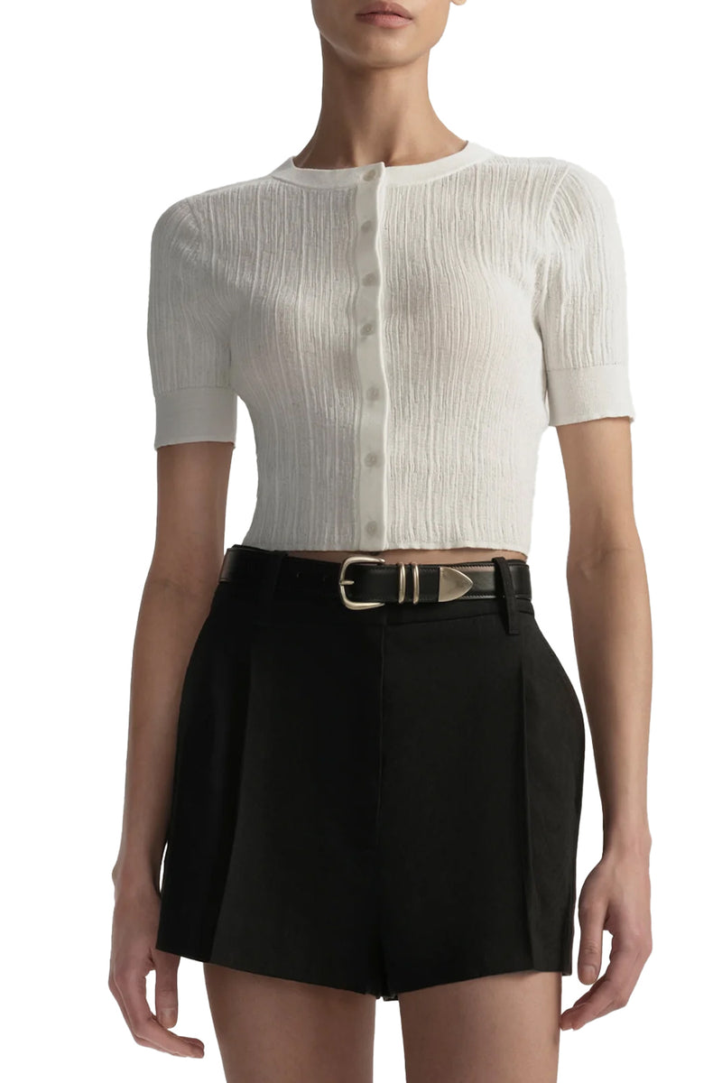 Lottie Fine Cotton Cropped Cardigan in Bright White