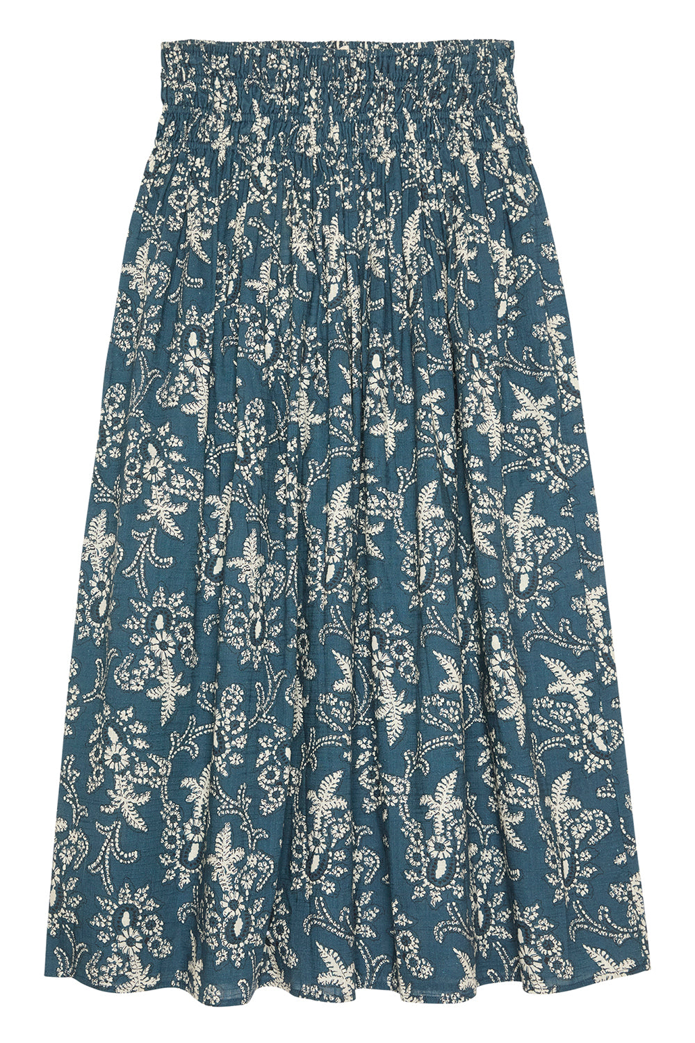 Wanderlust A-Line Maxi Skirt in Blue Toile
