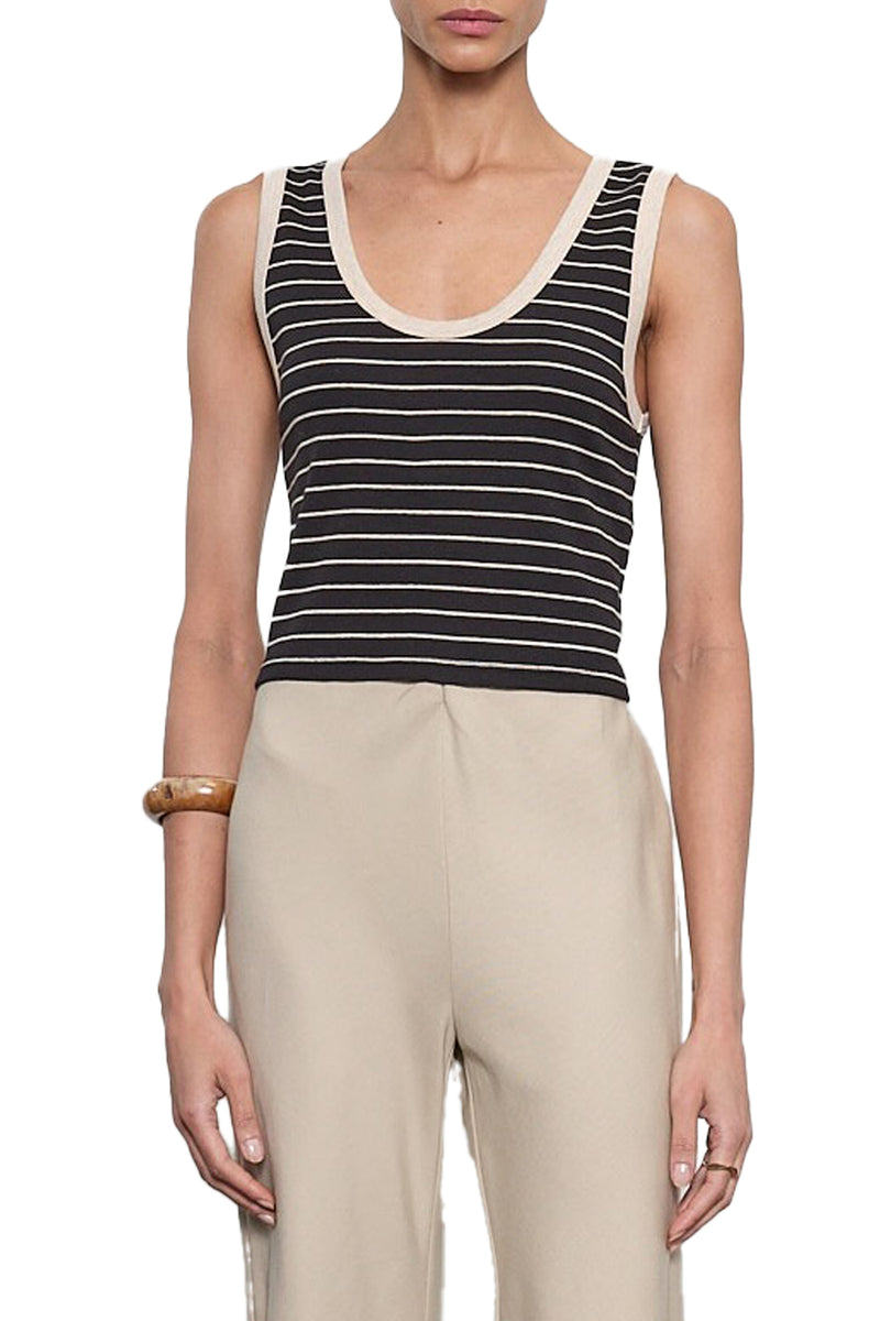 Cotton Stripe Classic Tank in Black Wheat Stripe
