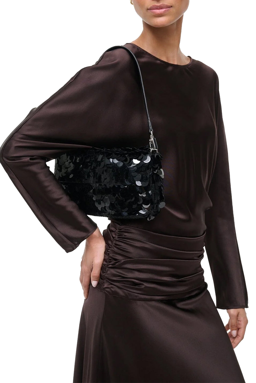 Inspired by Staud’s best-selling Tommy Bag, the Timmy features a single flap with magnetic closure and removable leather strap offering the versatility to wear as a clutch.