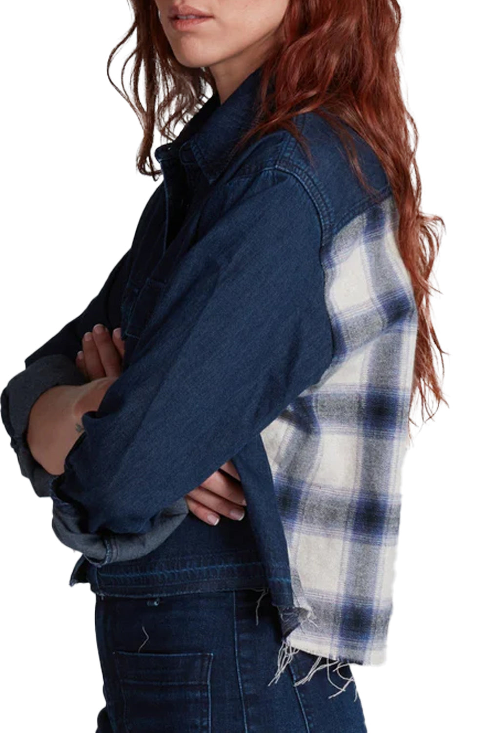 The Crosby Combo Shirt from ASKK is an off-duty style made for casual days and cool nights. Crafted from dark soft Japanese denim, this shirt features a soft plaid contrasting back, button front, and two chest pockets. Model is 5’9” wearing size small.