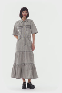 The Future Long Denim Dress is a modern, playful style for work or play. It features a collar, button closure at the front, and pockets at the front, side and back. This dress is crafted from sustainably made organic cotton and Viscose (CIRCULOSE®). This material is part of Ganni’s Fabric of the Future initiative, set up in 2019 to research, develop and invest in innovative materials that are paving the way for the future of fashion. CIRCULOSE® is made from 100% cotton textiles, such as worn-out cotton jeans and cotton production scraps. The material is used to make viscose, lyocell and other types of man-made cellulosic fibres. The only difference with CIRCULOSE® is that it's made from textile waste instead of new cotton, oil or wood. Circulose® is a registered trademark of Circulose®. Model is 5’9” wearing size US 4.