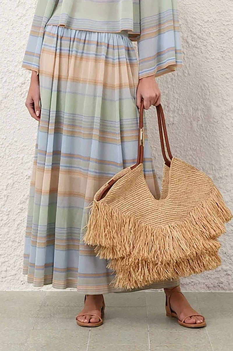 Wanderlust Frill Maxi Skirt in Tapestry Burgundy Multi