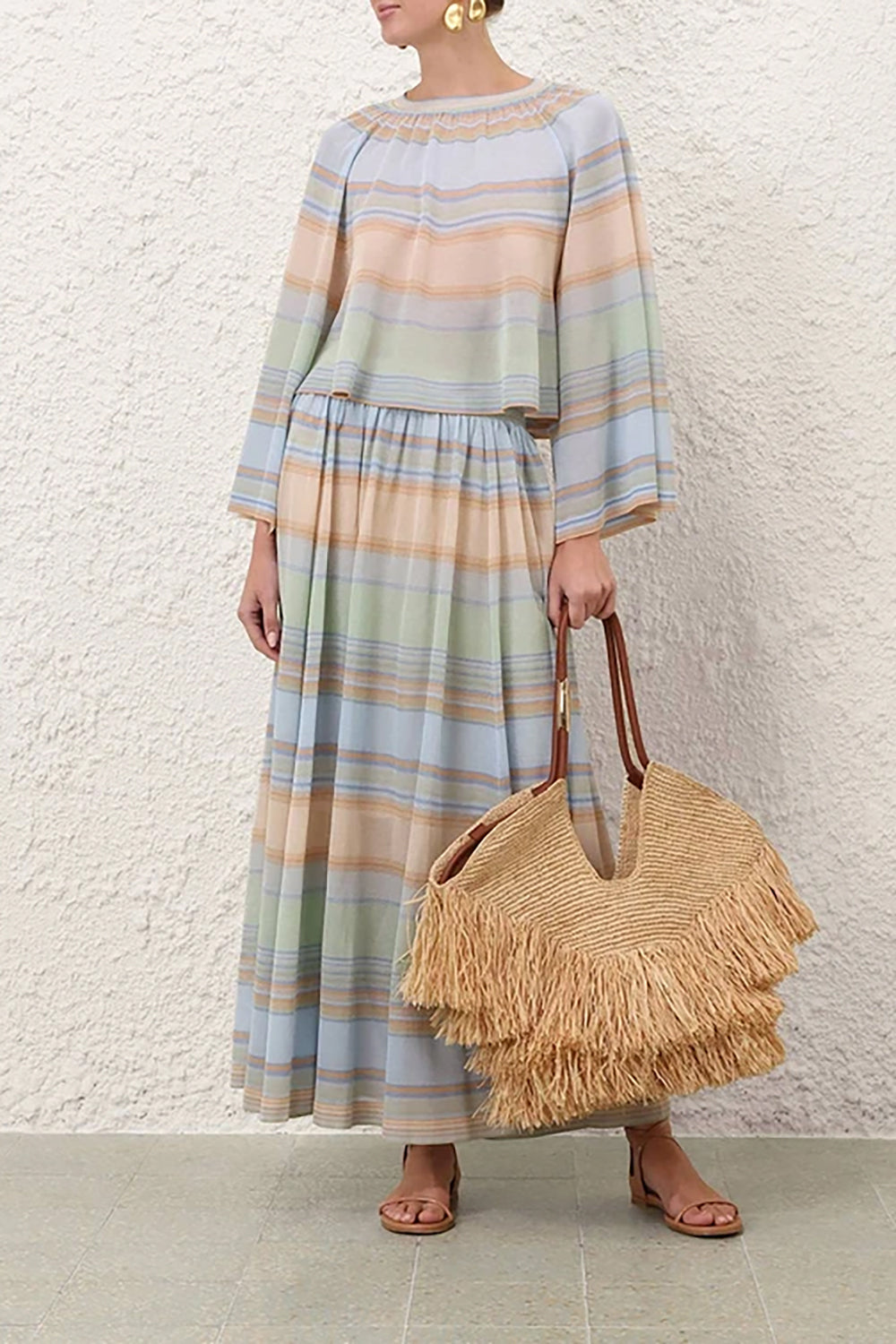 Indra Stripe Bell Sleeve Top in Blue Multi