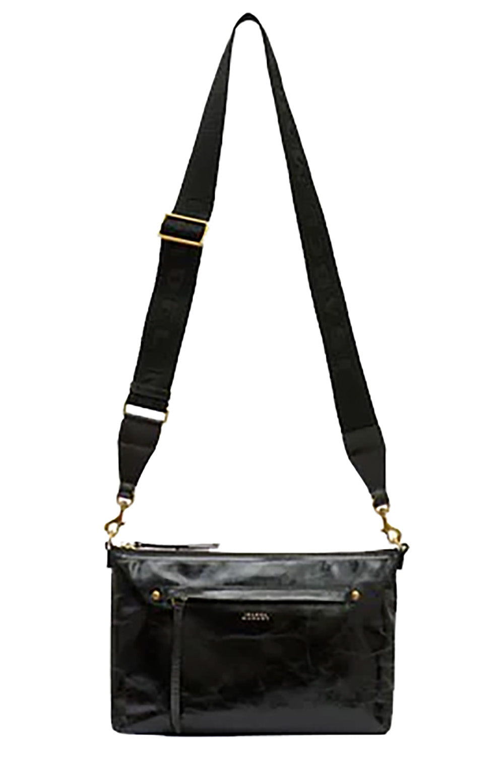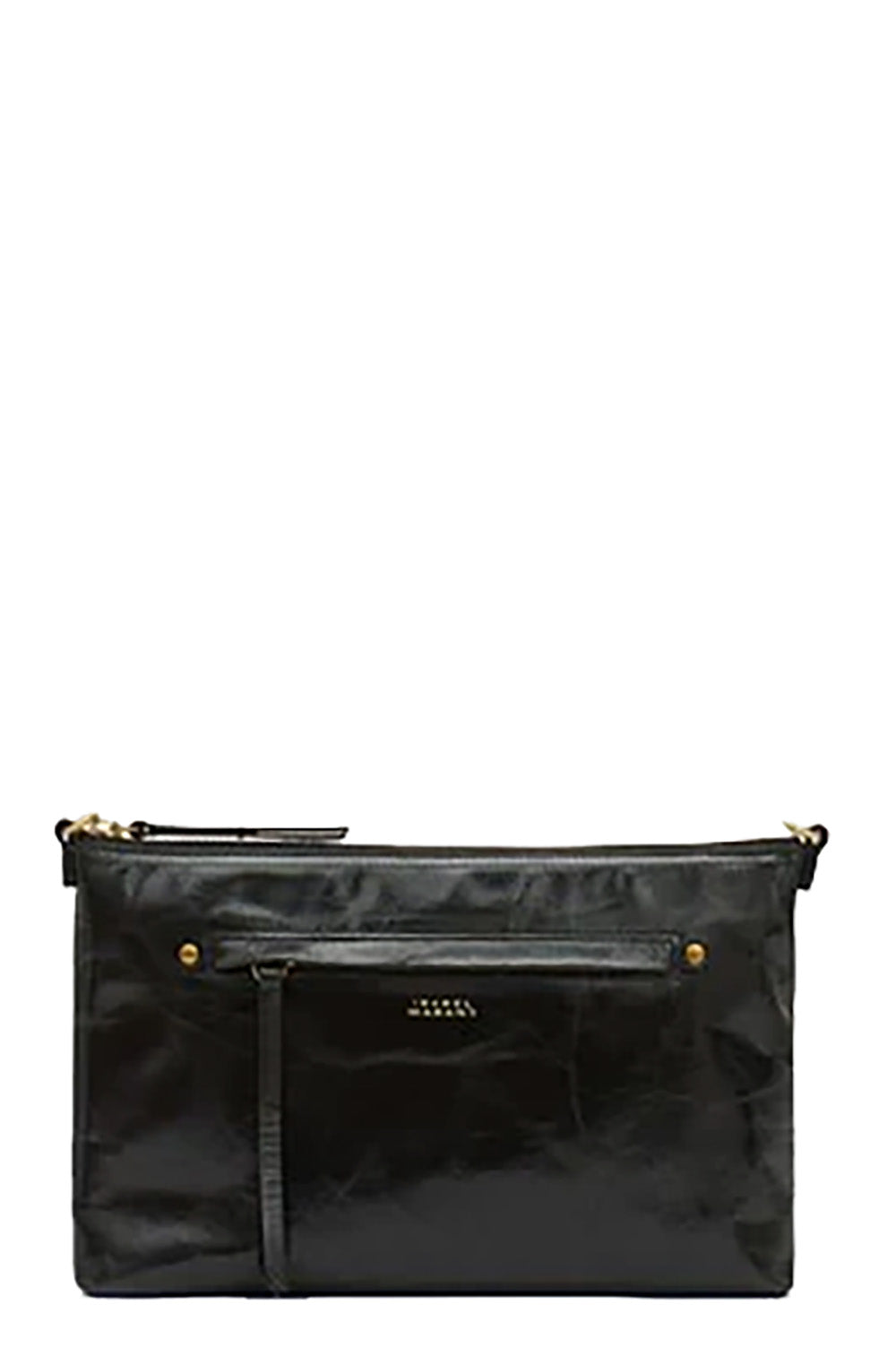 Crafted from soft calfskin leather, the Nesssah Shoulder Bag from Isabel Marant is a versatile, timeless style that can be carried by hand or crossbody. This bag features an adjustable and removable woven handle with "Marant" logos and engraved snap hooks, a zippered front pocket with a long leather slider, metal stud details, an embossed "Isabel Marant" logo on the front, soft leather card pockets inside with an embossed "Isabel Marant" logo, twill lining, and golden metal details.