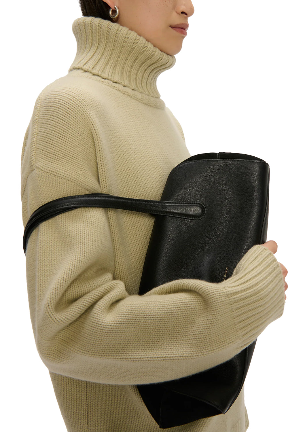 The Helios bag features a sleek, elongated east-west shape and comfortable shoulder straps for easy wear.