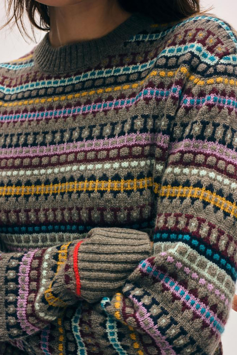 Cashmere Fair Isle Crewneck in Ashen Brown Combo