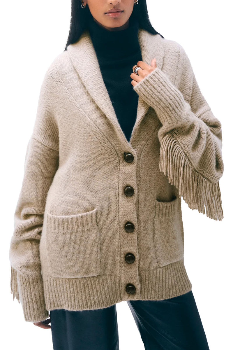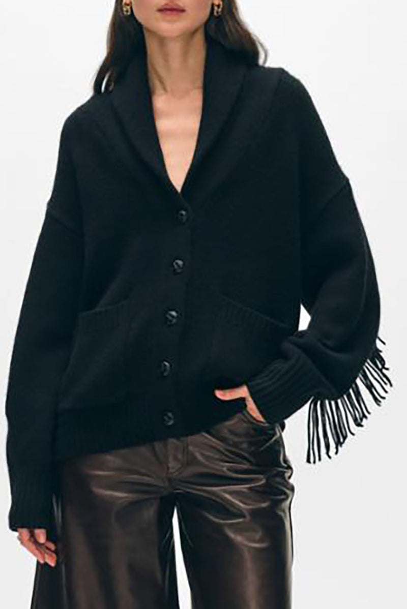 Cashmere Blend Luxe Fringe Coatigan in Black
