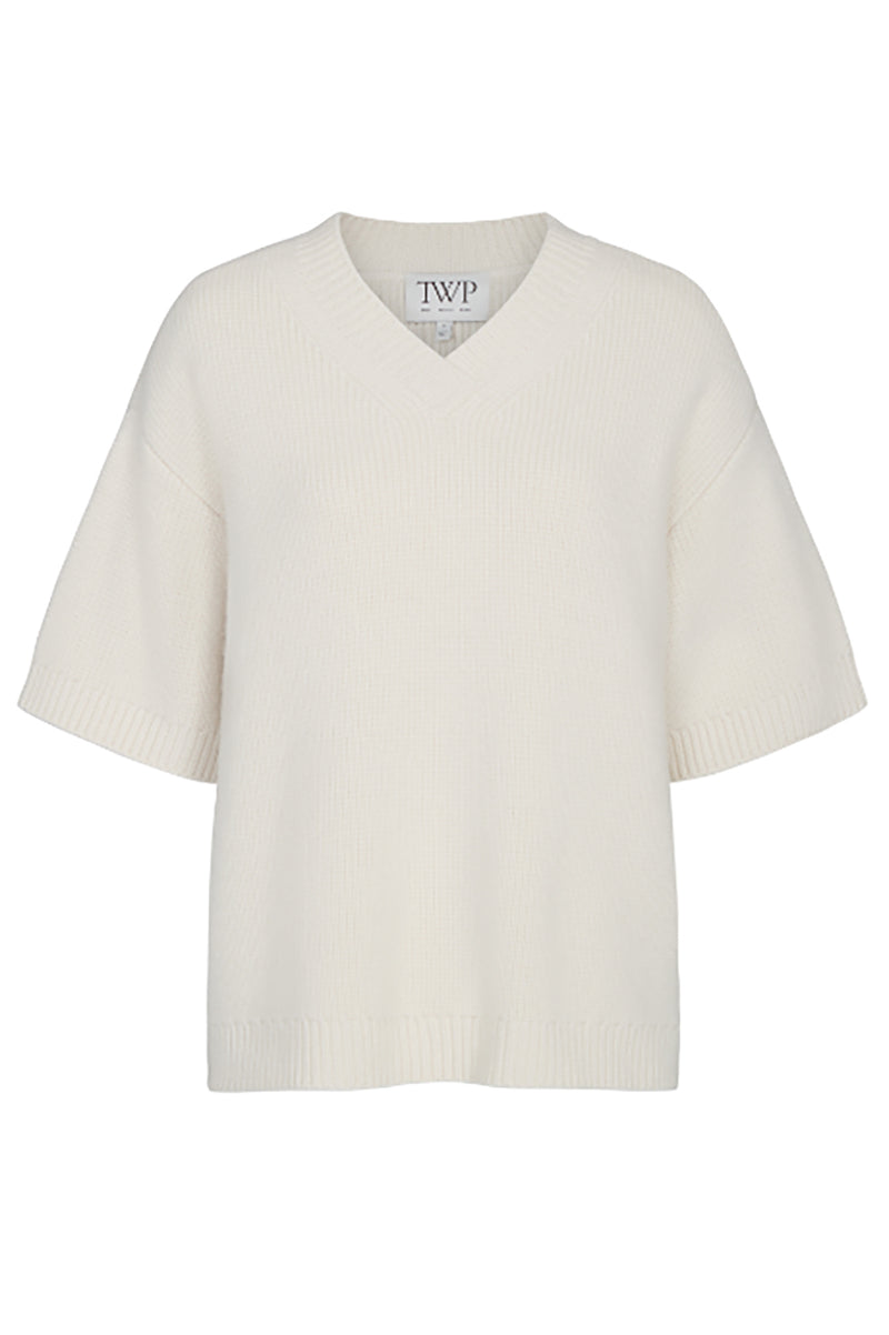 Premium Cashmere Short Sleeve Collared Cardigan in Oat