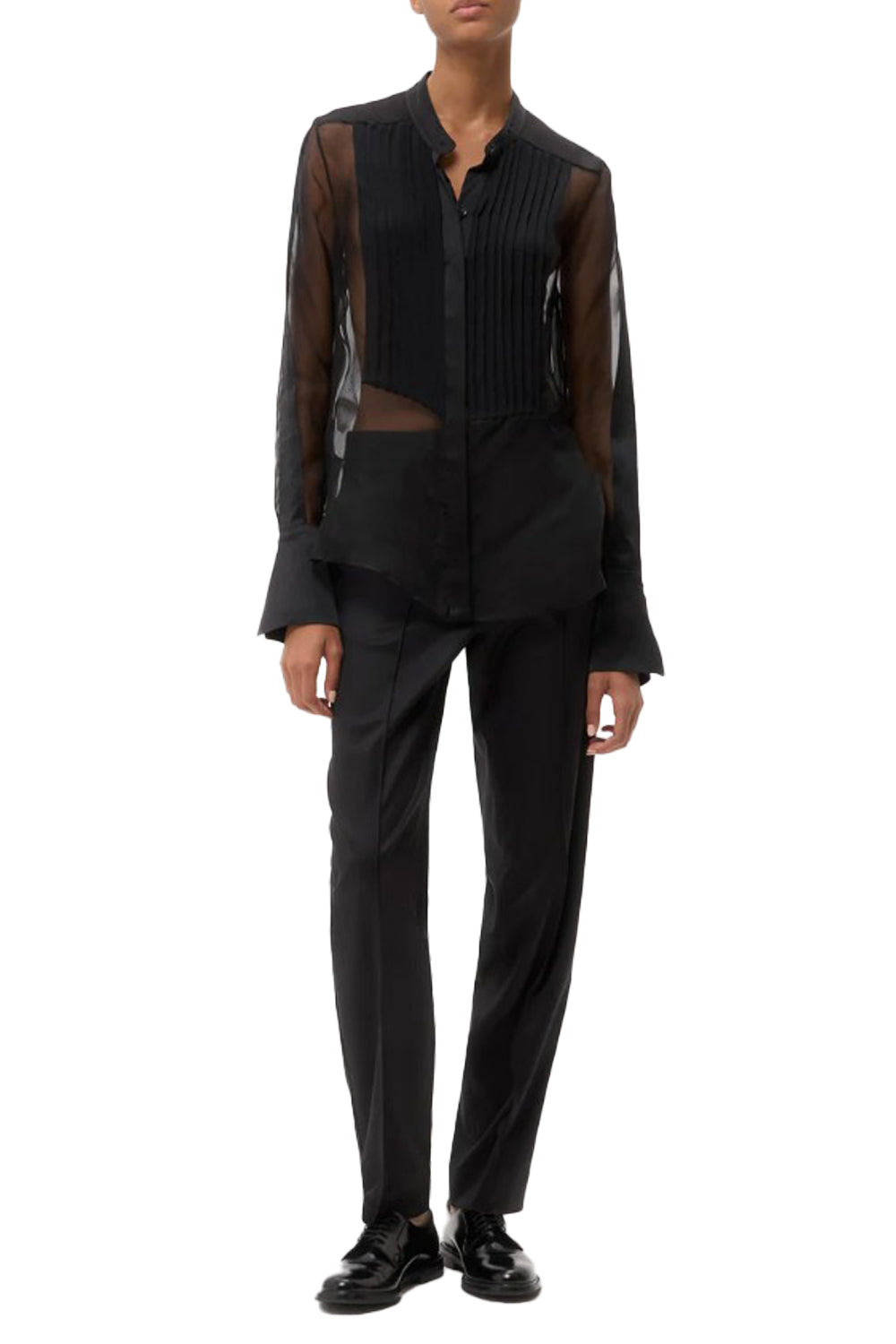 Rib Crew with 2-Tone Juliette Sleeves in Black Bankers Grey