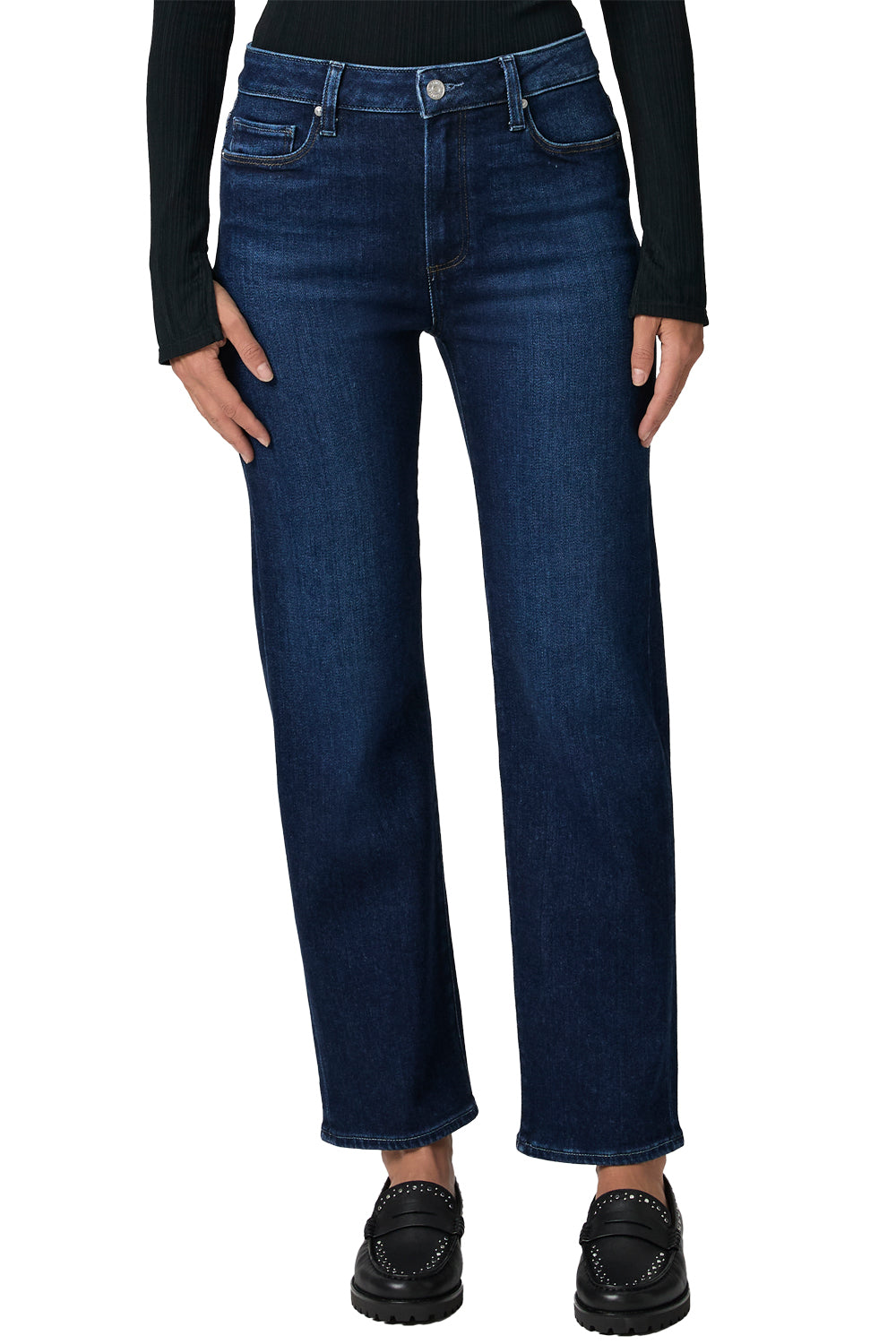 The Mason Ankle Straight Jean by Paige is a clean and classic jean crafted from Paige's signature TRANSCEND VINTAGE denim. This jean features ample stretch, a rich dark wash, and a straight leg with a finished ankle grazing inseam.