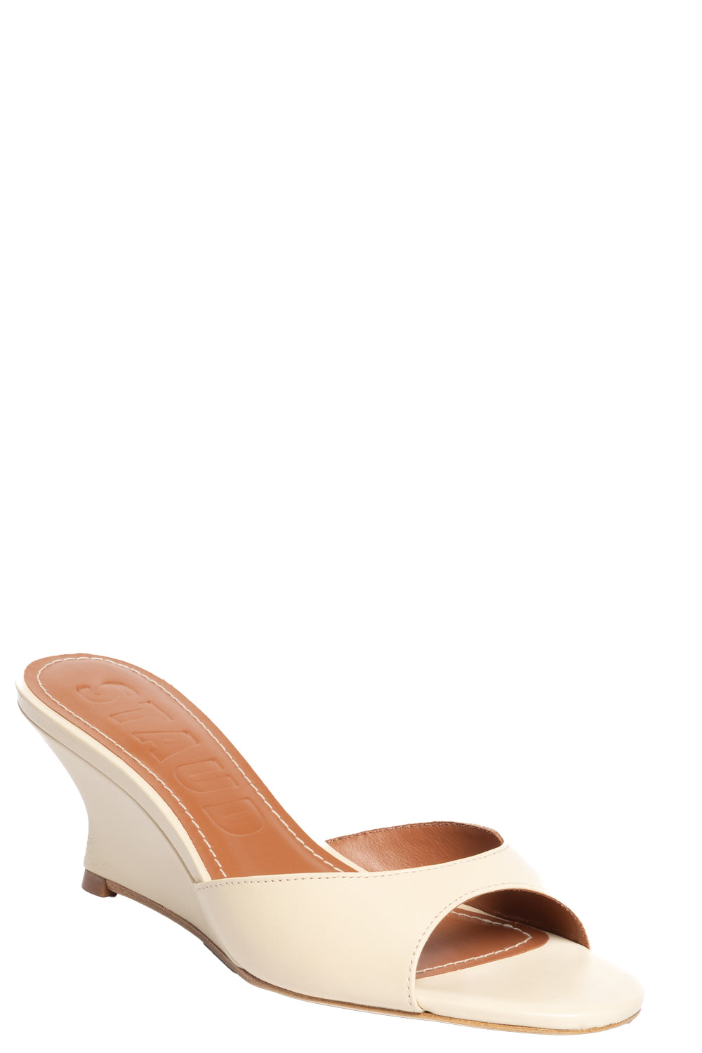 An open-toe mule crafted in cream leather, the Brigitte is an essential wedge heel for versatile dressing. This shoe features a 55mm / 2.2" heel height.