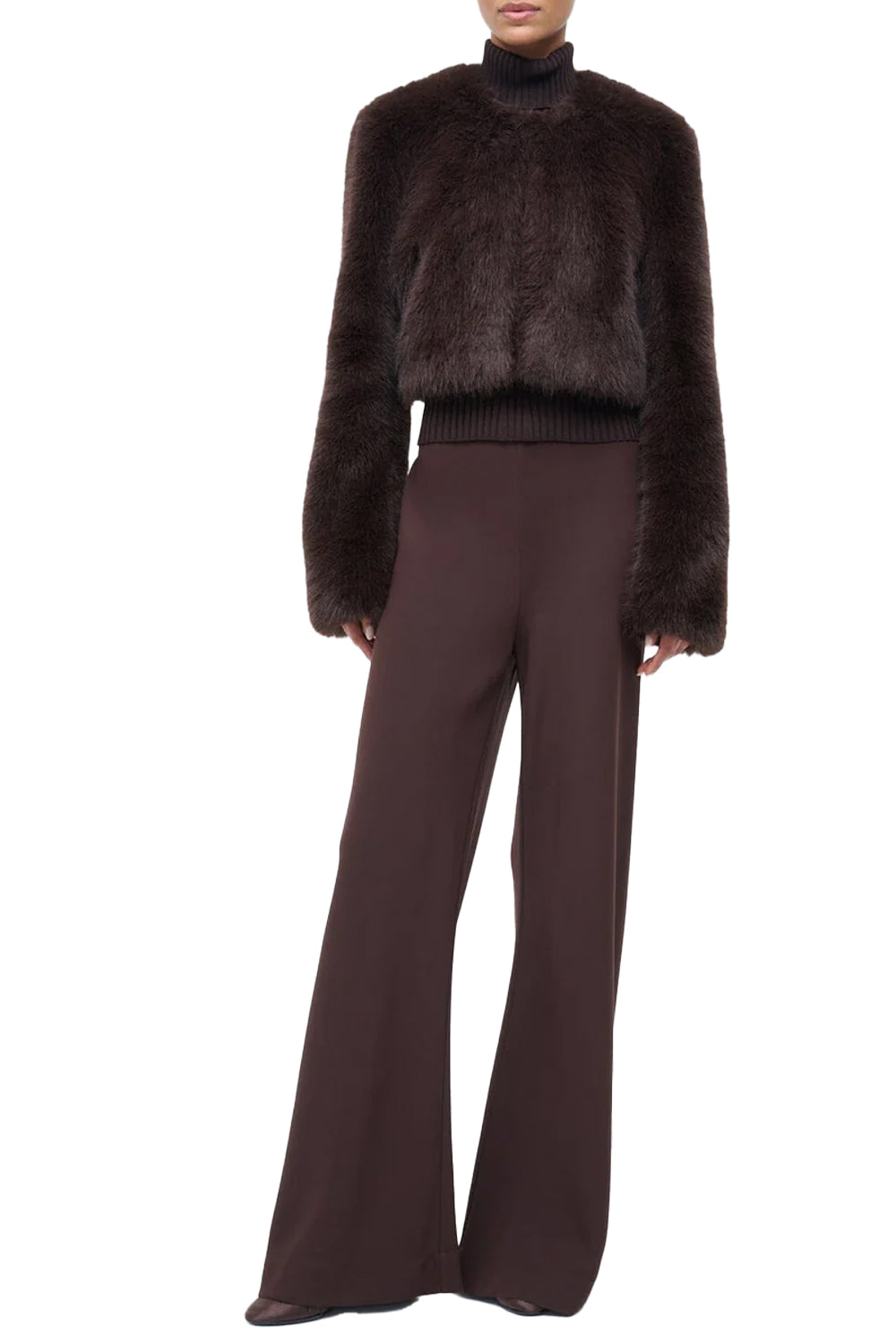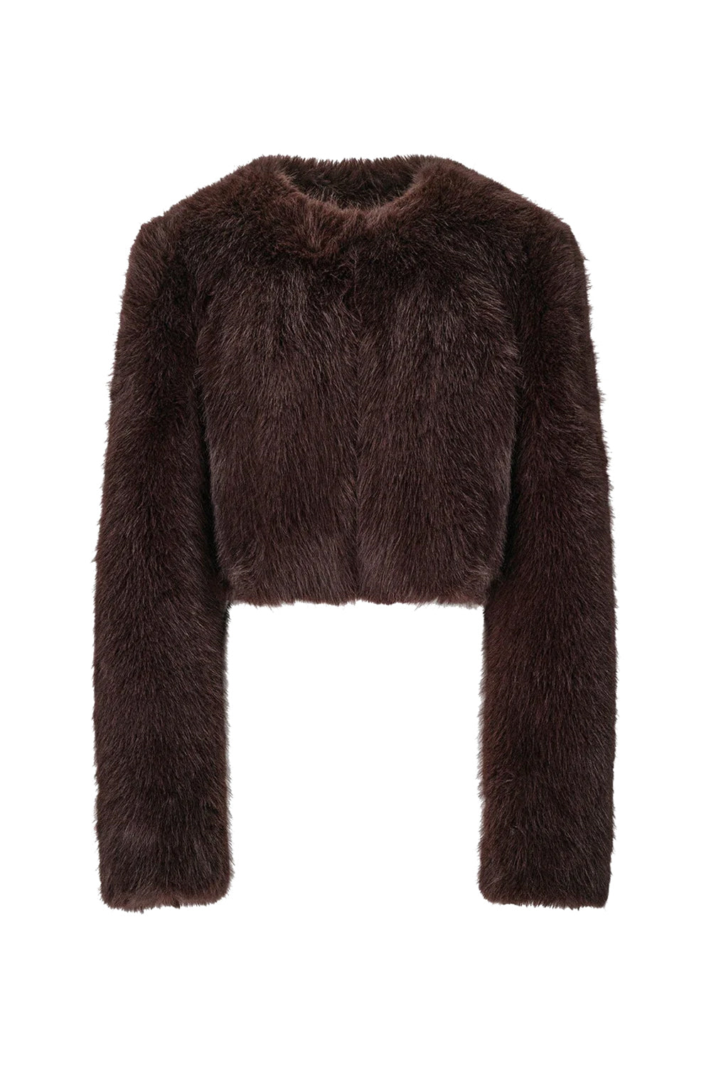 Plush and luxe, the Misa Jordyn Faux Fur Jacket is a sophisticated style that layers beautifully over dresses and more. Crafted from super soft faux mink, this jacket features a cropped fit, long sleeves, hidden hook and eye closures, double slit pockets, and a satin lining. Model is 5’10” wearing size small.
