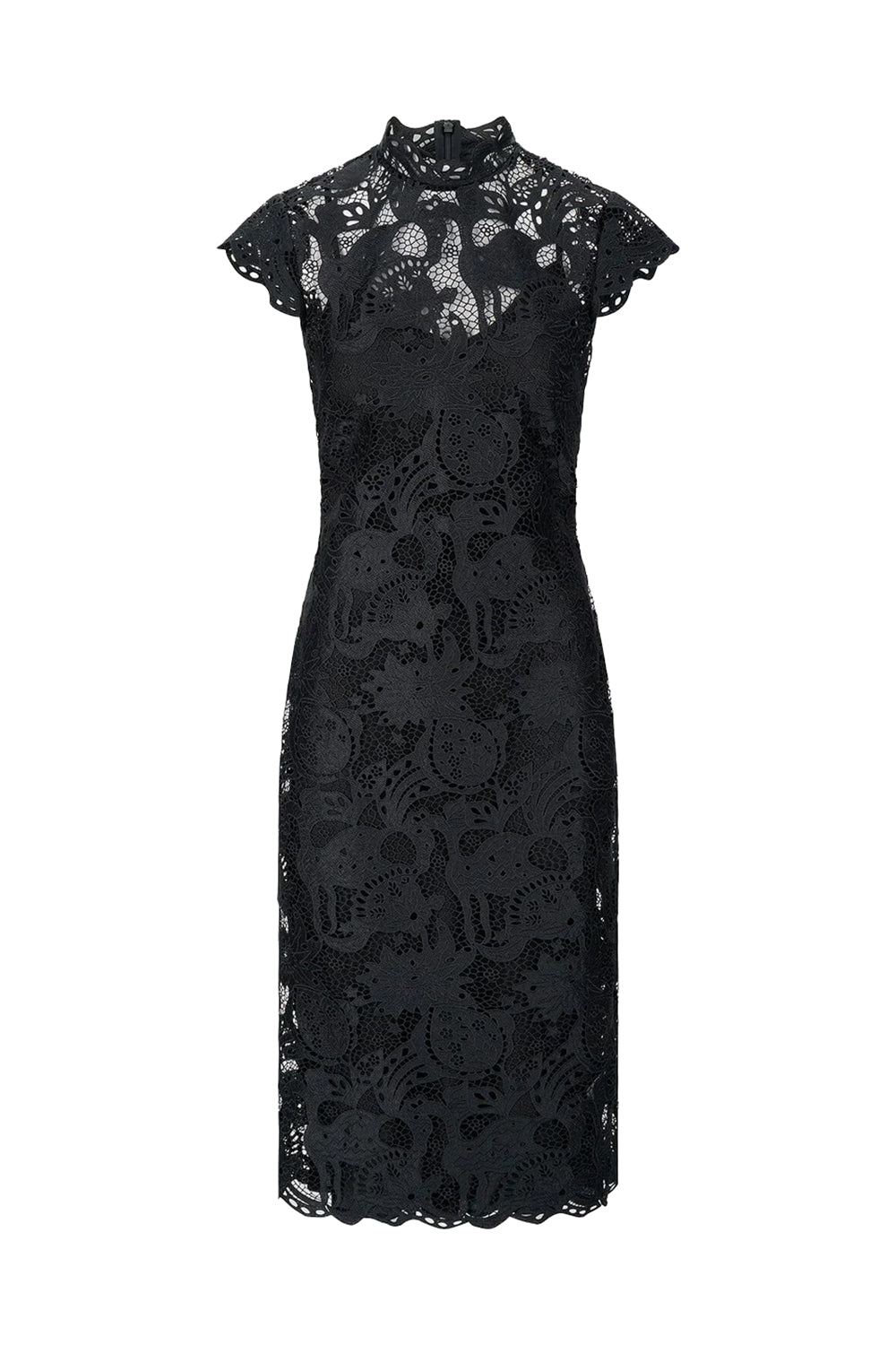 The stunning guipure lace Rosaline Dress from Staud is a romantic LBD perfect for your next special occasion. This mid-length slim-fitting dress features flutter sleeves, a scalloped hem, and an invisible back zip. Model is 5’10” wearing size 4.