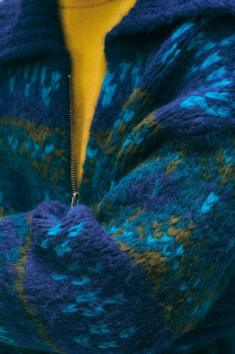 Alpaca Blend Fair Isle Bomber in Teal Combo